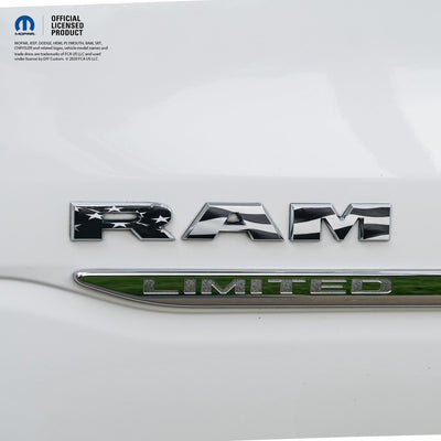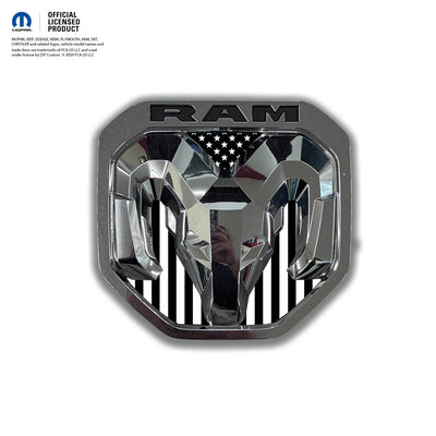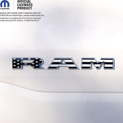 RAM 4x4 Emblem Overlay Decals GRAYSCALE AMERICAN FLAG Fits 2009-2026 1500-5500