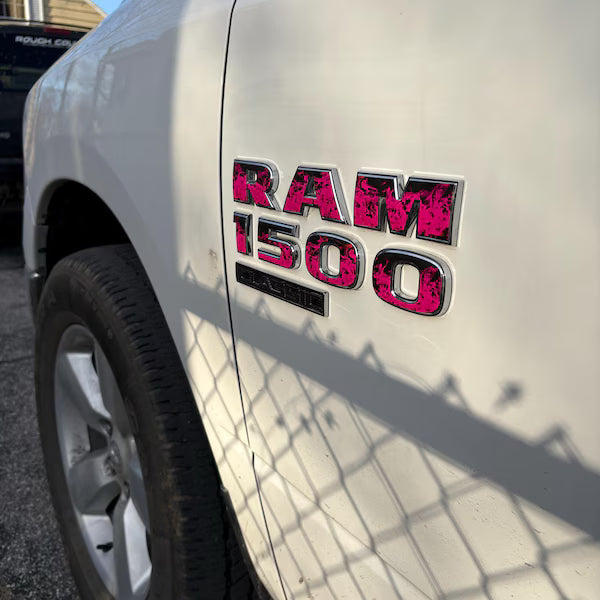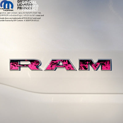 RAM Tailgate/Grill RAM Head Emblem Overlay Decals PINK FLAMES Fits 2011-2024 Trucks