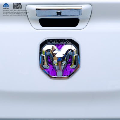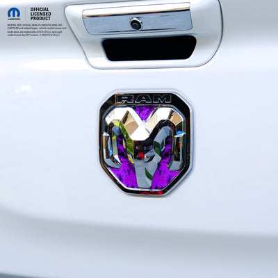 RAM Tailgate/Grill RAM Head Emblem Overlay Decals PURPLE FLAMES Fits 2011-2024 Trucks