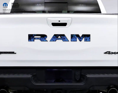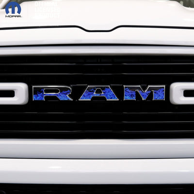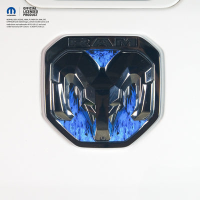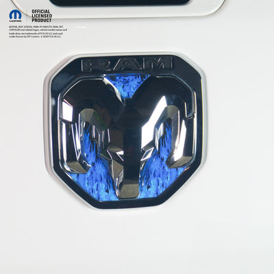 RAM Tailgate/Grill RAM Head Emblem Overlay Decals BLUE FLAMES Fits 2011-2024 Trucks