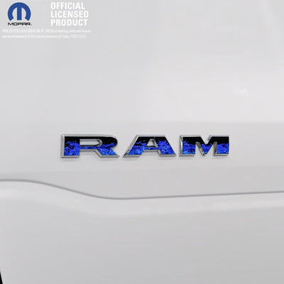 RAM 1500 Hood Emblem Overlay Decals L&R BLUE FIRE Fits 2019-2026 RAM Trucks