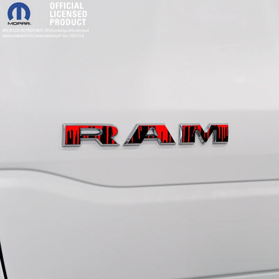 RAM Tailgate/Grill RAM Head Emblem Overlay Decals DRIPPING RED Fits 2011-2024 Trucks