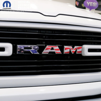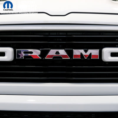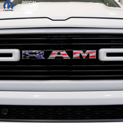 RAM Grill Emblem Overlay Decals WAVING AMERICAN FLAG Fits 2009-2026 1500-5500