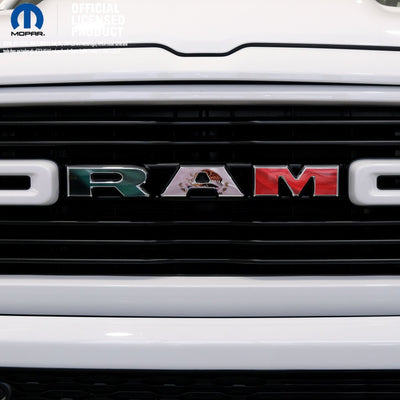 RAM Grill Emblem Overlay Decals WAVING MEXICAN FLAG Fits 2009-2026 1500-5500