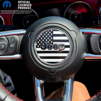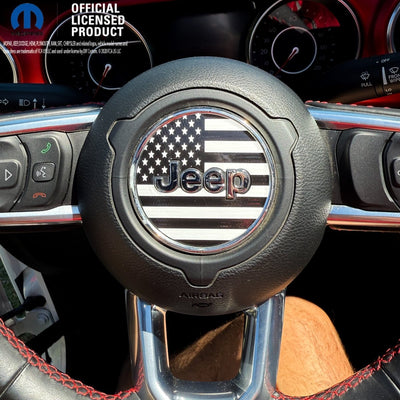 Jeep Wrangler JL Gladiator Steering Wheel Circle Black & White American Flag Vinyl Decal Sticker