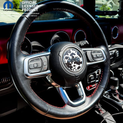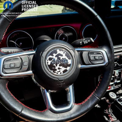 Jeep Wrangler JL Gladiator Steering Wheel Circle Black Cow Print Vinyl Decal Sticker