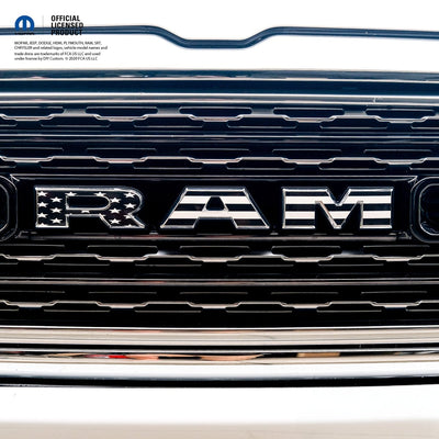 RAM Grill Emblem Overlay Decals BLACK & WHITE AMERICAN FLAG Fits 2009-2026 1500-5500