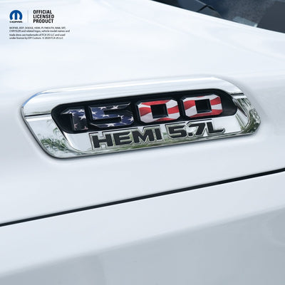 RAM 1500 HEMI Fender Emblem Overlay Decals (Pair) AMERICAN FLAG Fits 2013-2024