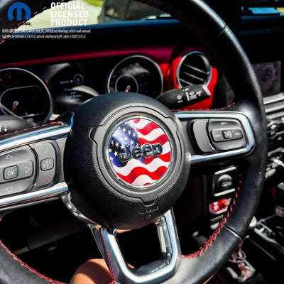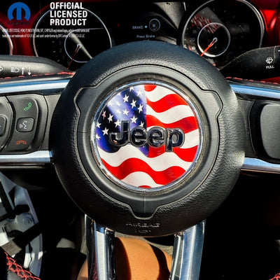 Jeep Wrangler JL Gladiator Steering Wheel Circle Waving American Flag Vinyl Decal Sticker