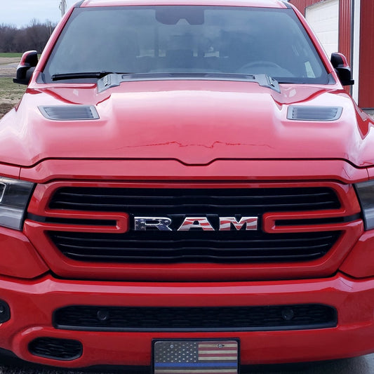 RAM Grill Emblem Overlay Decals WAVING AMERICAN FLAG Fits 2009-2026 1500-5500