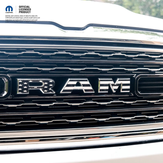 RAM Grill Emblem Overlay Decals BLACK & WHITE AMERICAN FLAG Fits 2009-2026 1500-5500