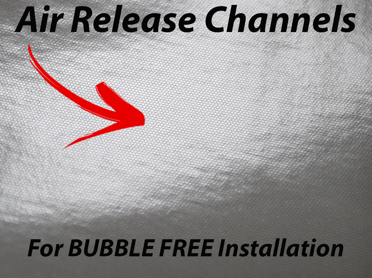 - DRY INSTALLATION ONLY No need for soapy water or expensive sprays. Any bubbles or air pockets are easily removed by simply working them to the edges of the vinyl. Bubbles follow the "Air Release Channels" and that leaves you with a perfect installation.