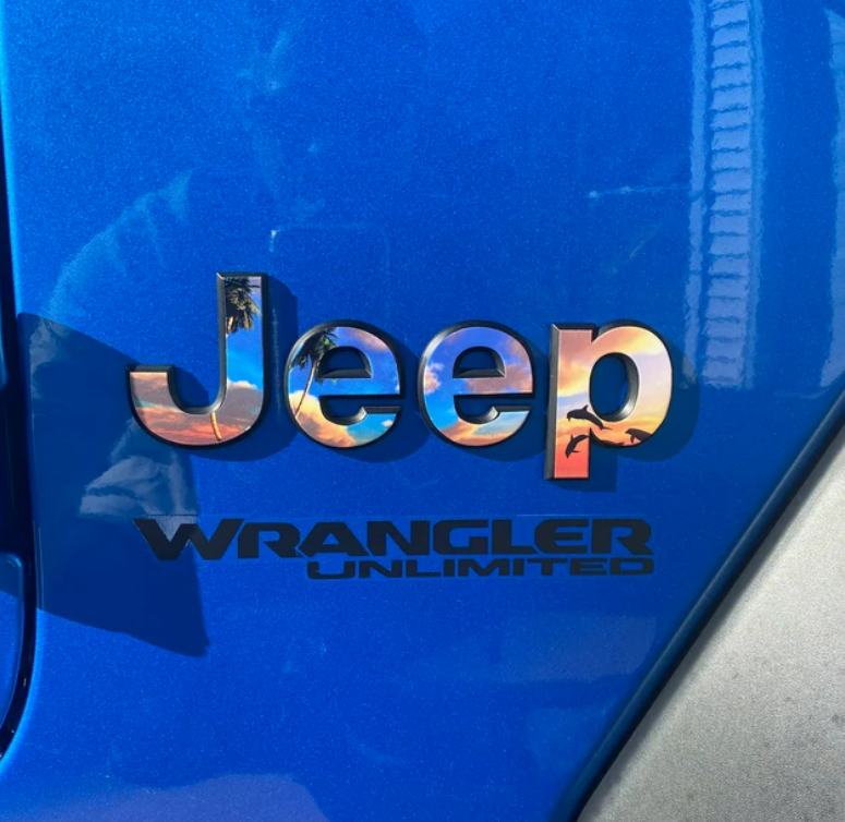 Jeep Emblem Overlay Decals - Dolphin Sunset