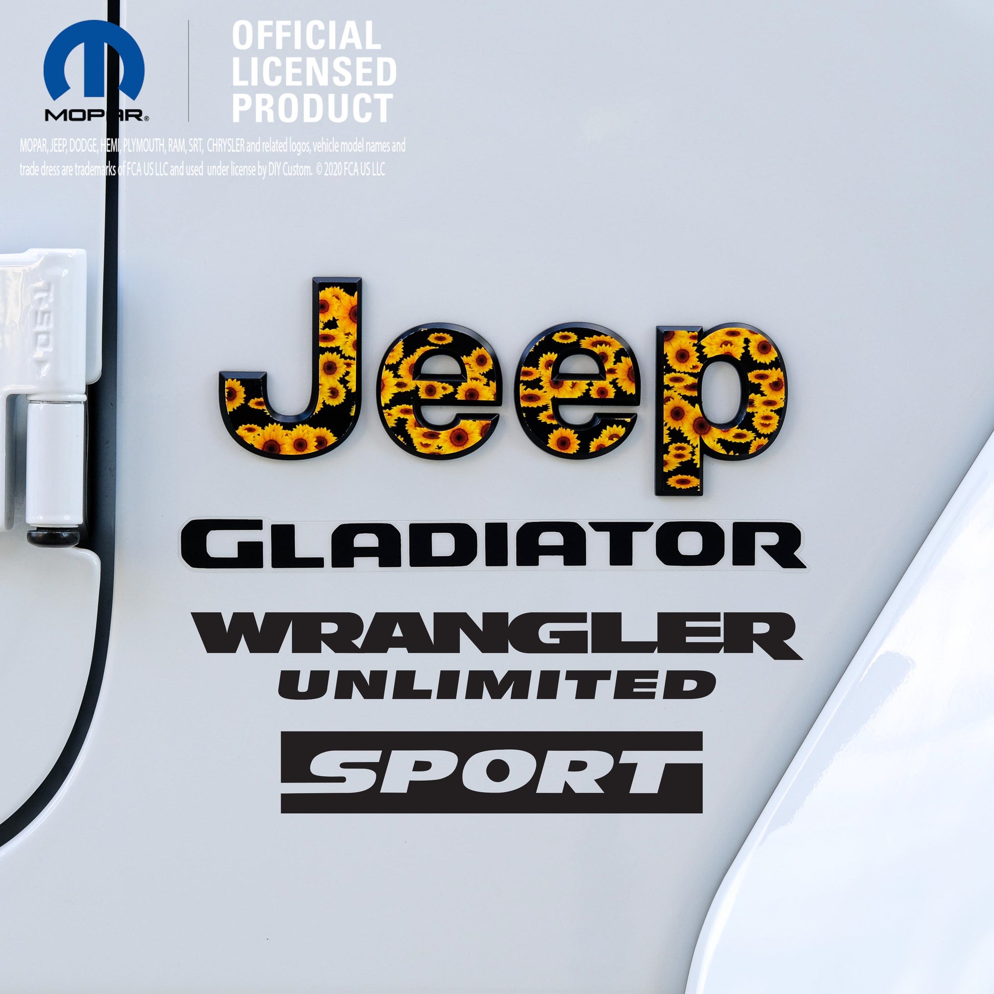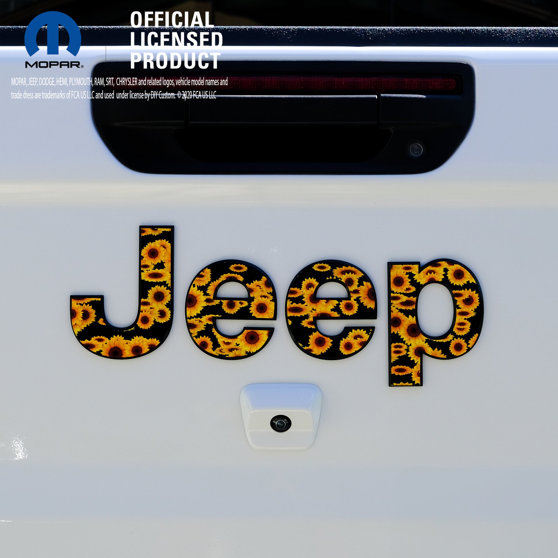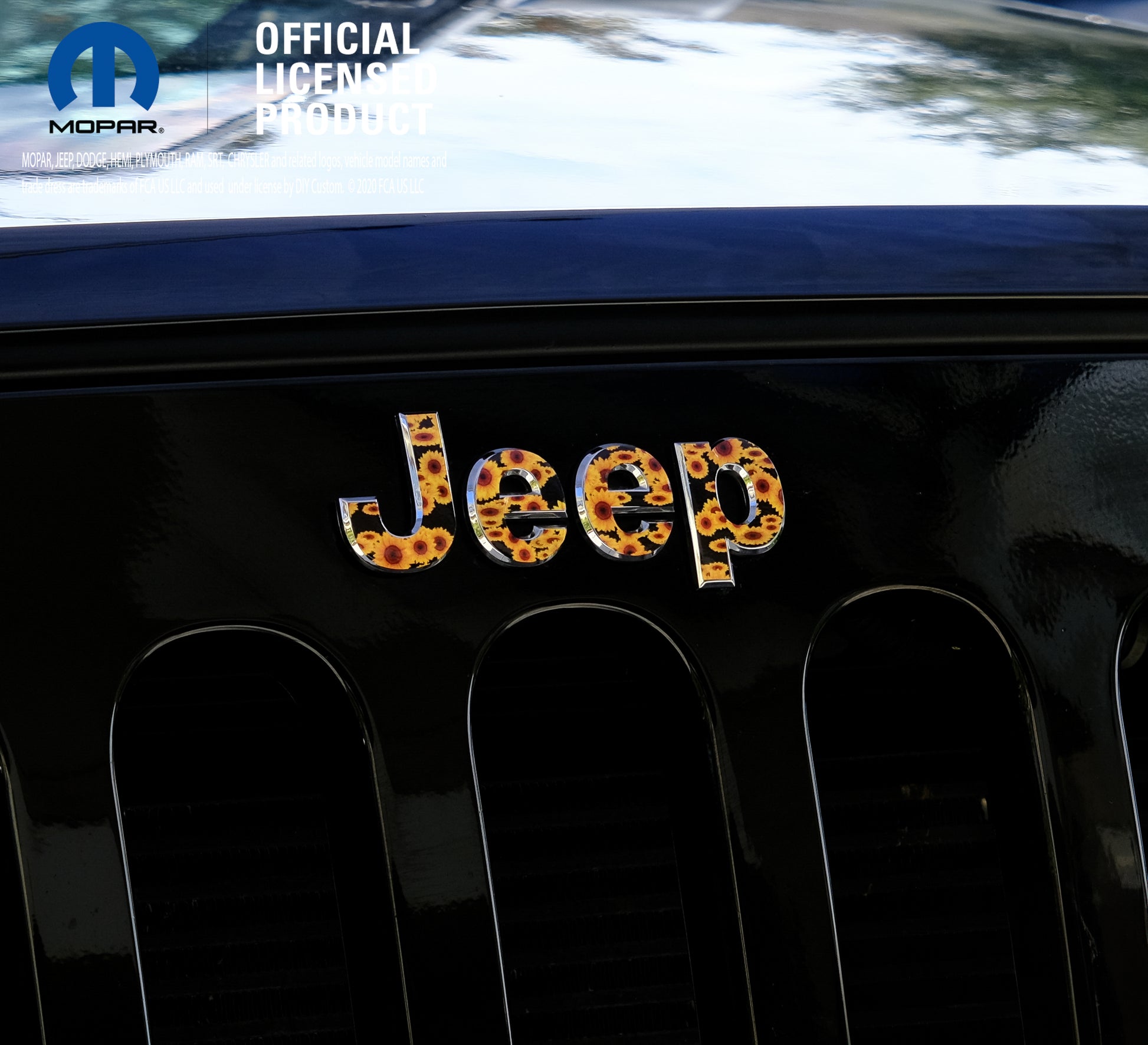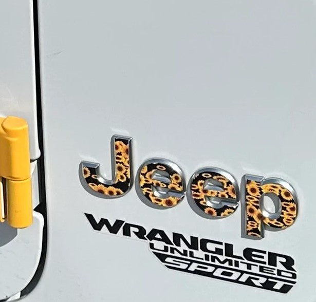 Jeep Emblem Overlay Decals - Sunflowers on Black