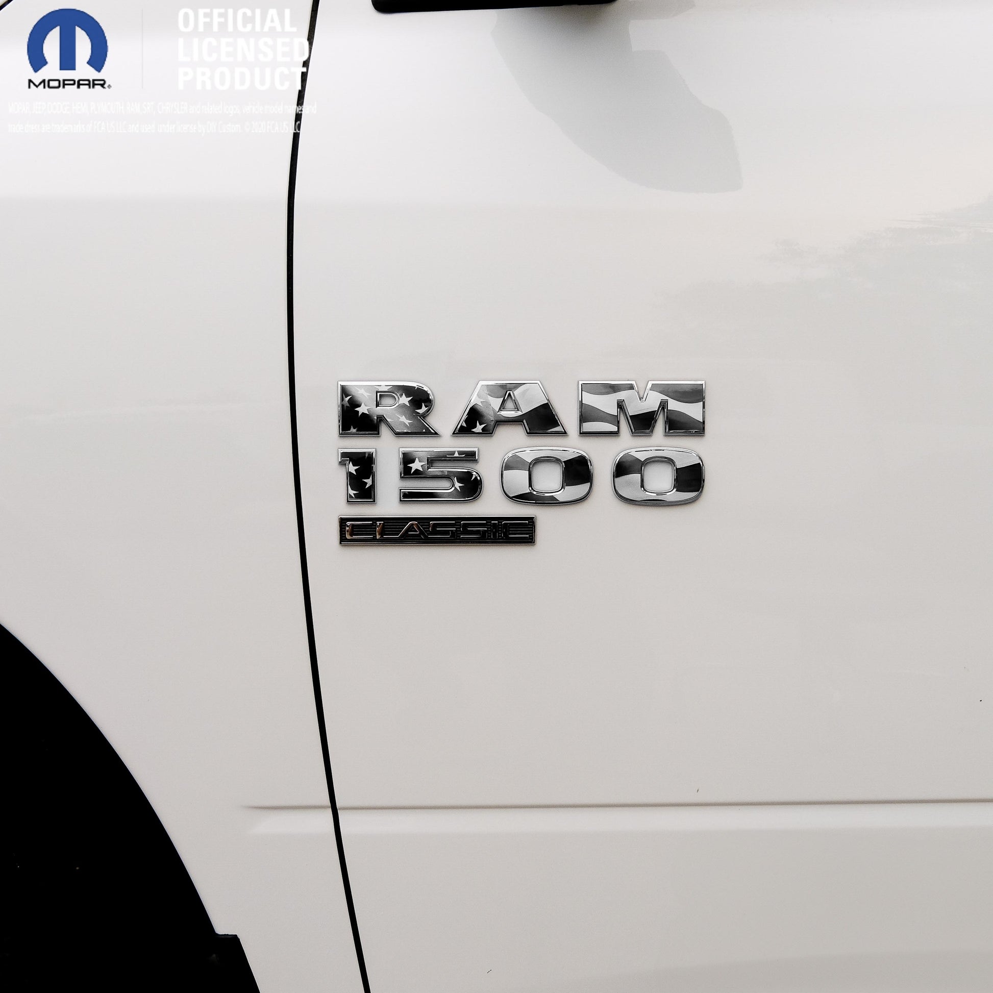 RAM Classic 1500-3500 Door Emblem Decals Grayscale American Flag Fits 2009-2024