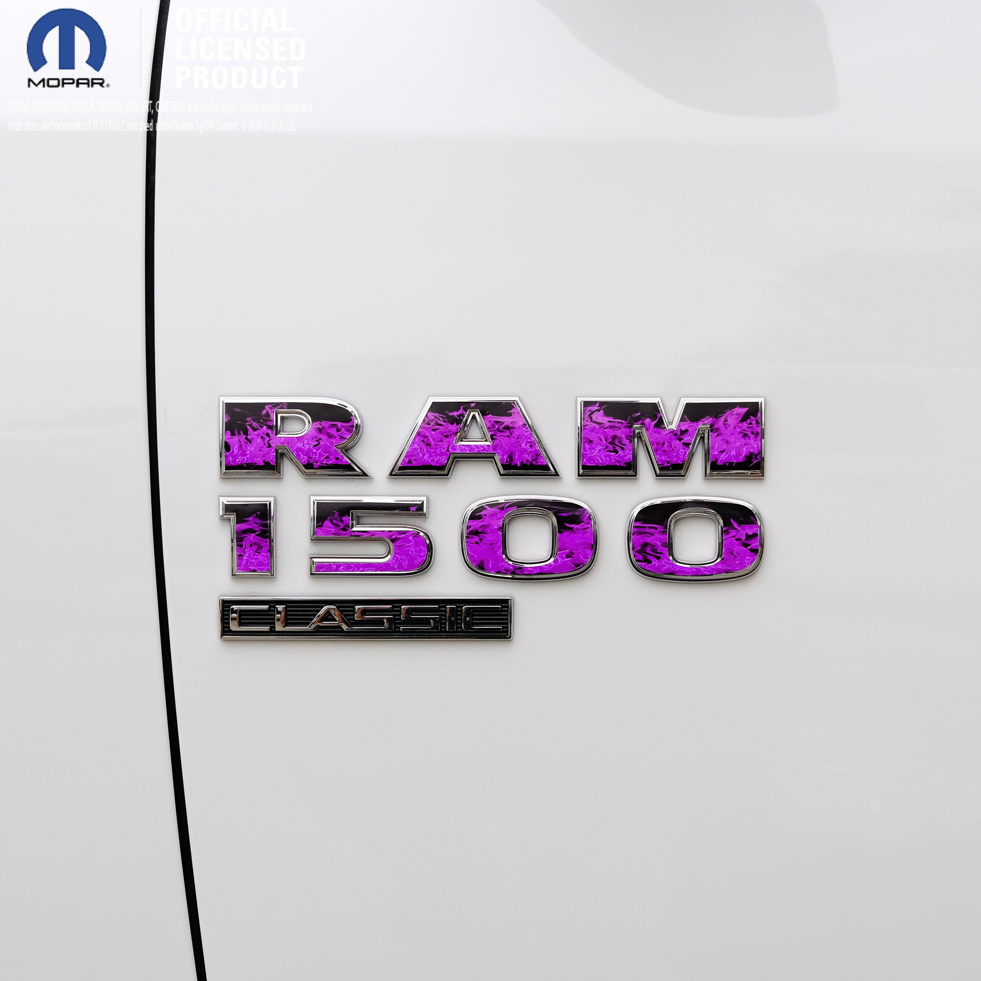RAM Classic 1500-3500 Door Emblem Decals PURPLE FLAMES Fits 2009-2024