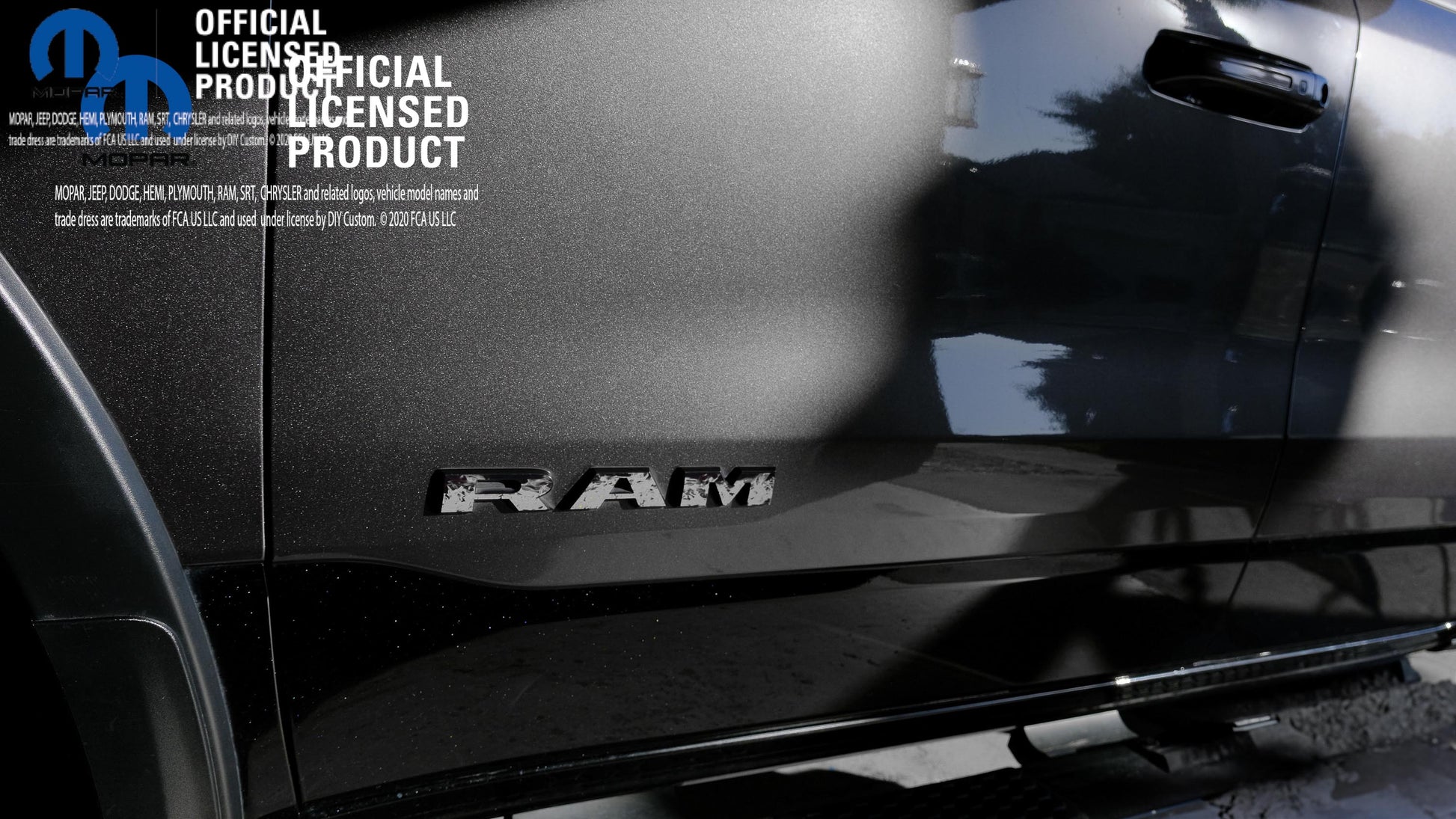 RAM Door x2 Emblem Overlay Decals L&R GRAYSCALE FIRE FLAMES Fits 2019-2026 RAM Trucks