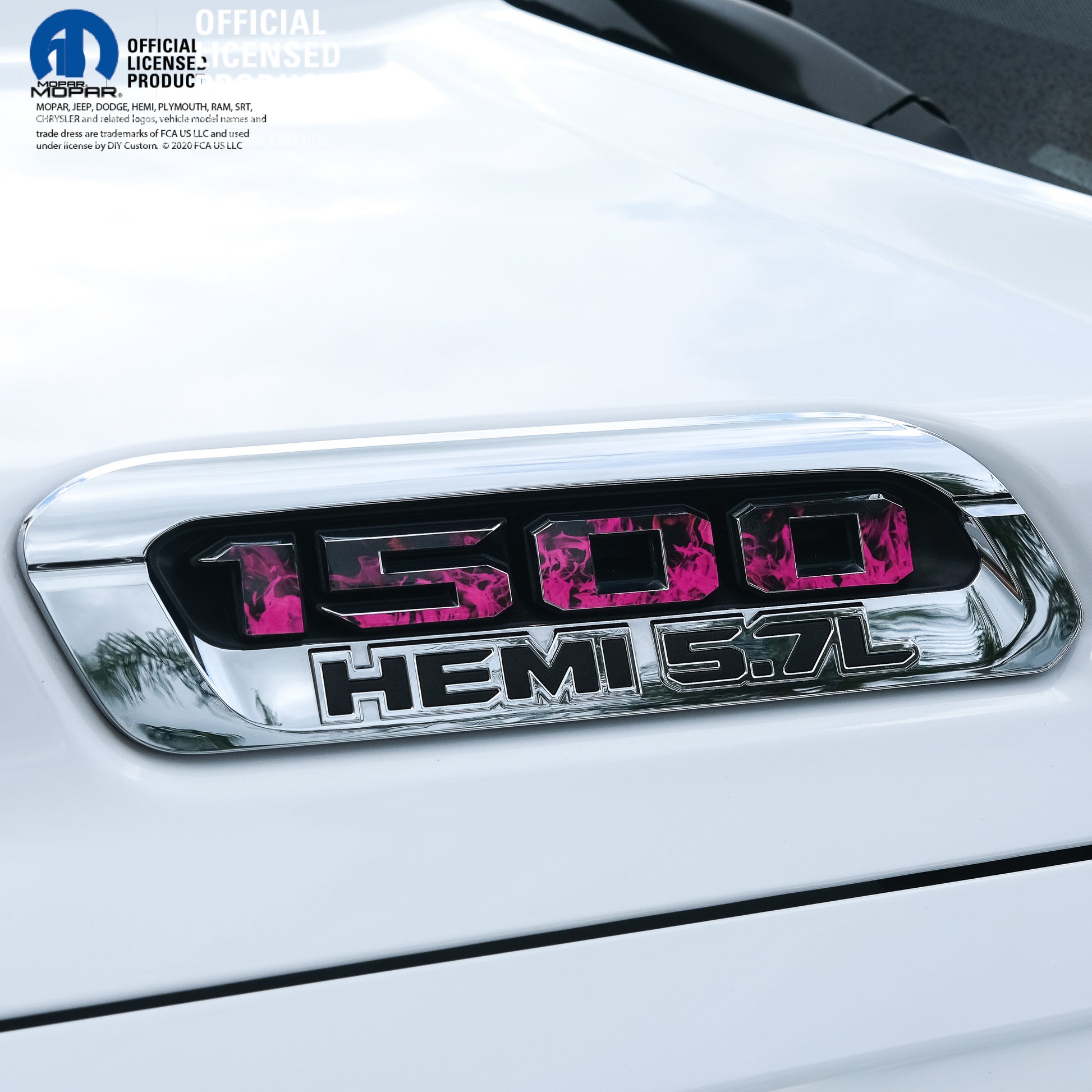 RAM 1500 Hood Emblem Overlay Decals L&R PINK FIRE FLAMES Fits 2019-2026 RAM Trucks