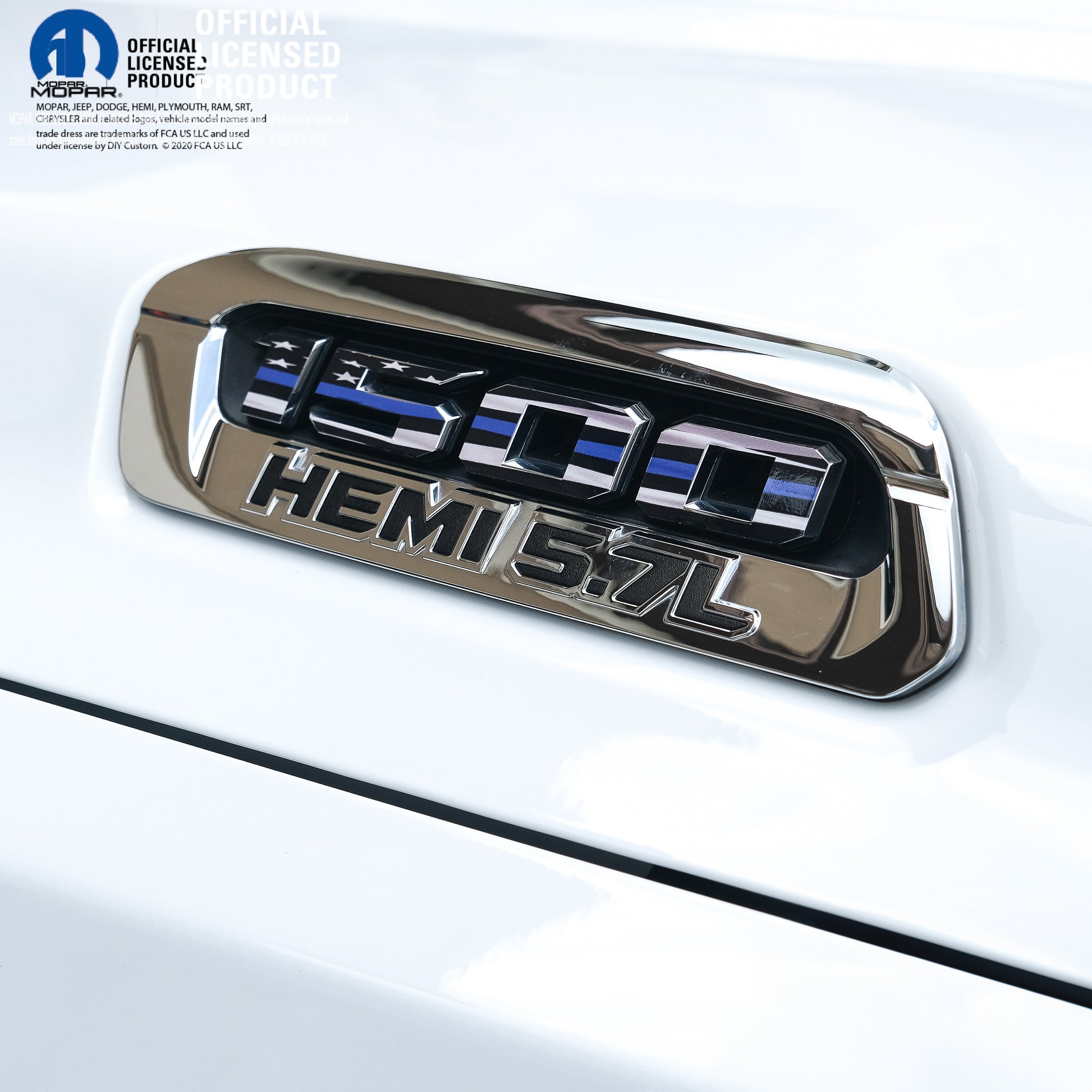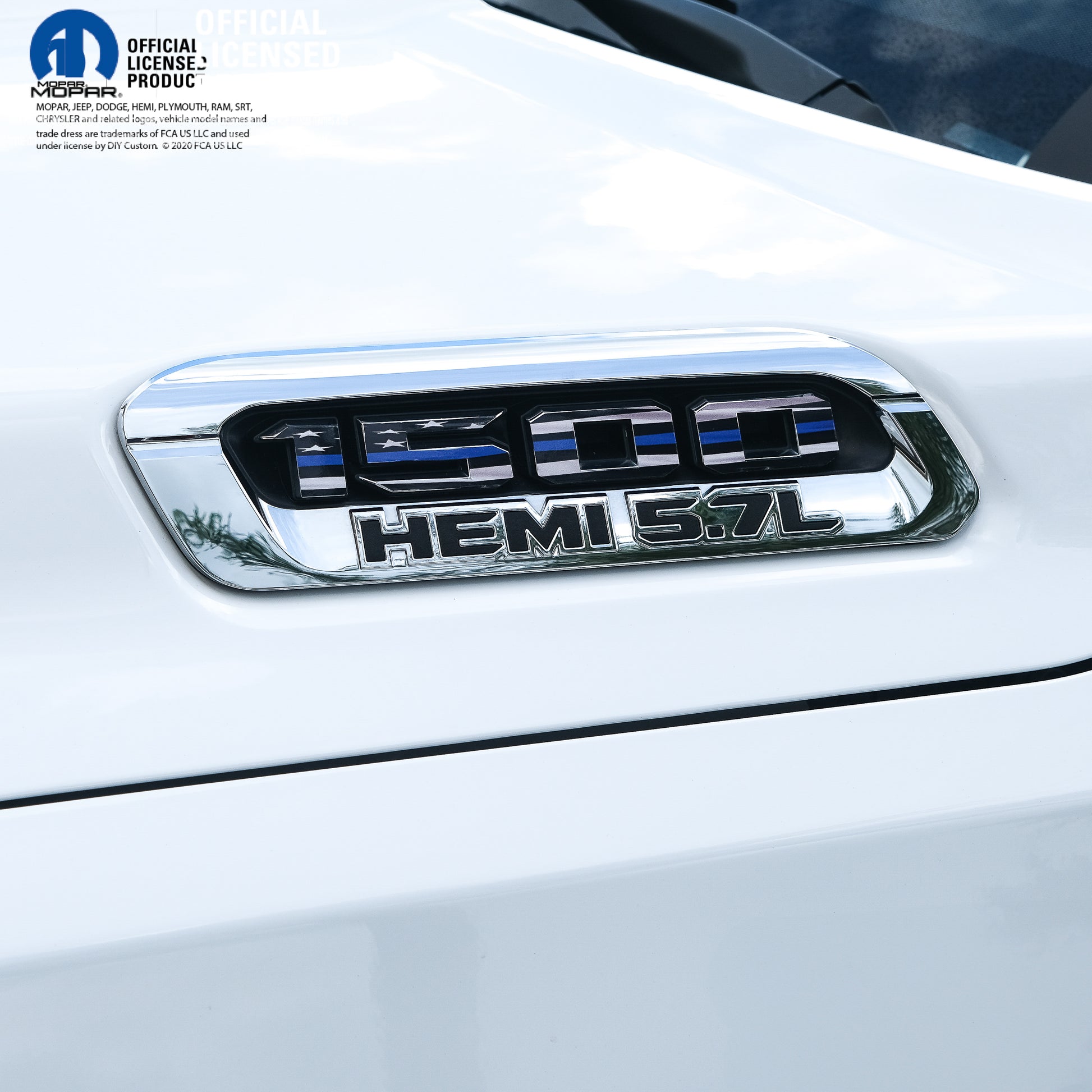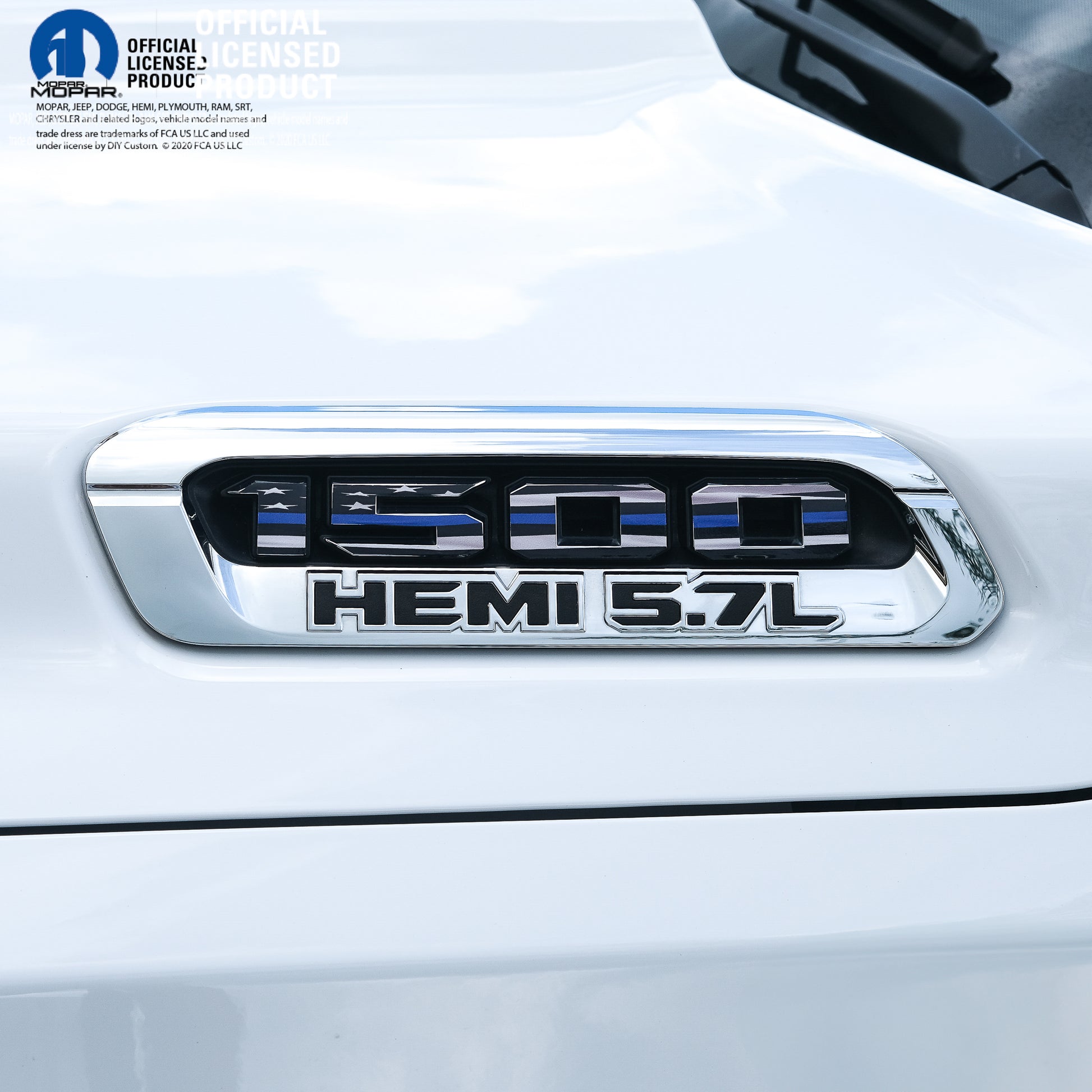 RAM 1500 Hood Emblem Overlay Decals L&R THIN BLUE LINE AMERICAN FLAG Fits 2019-2026 RAM Trucks